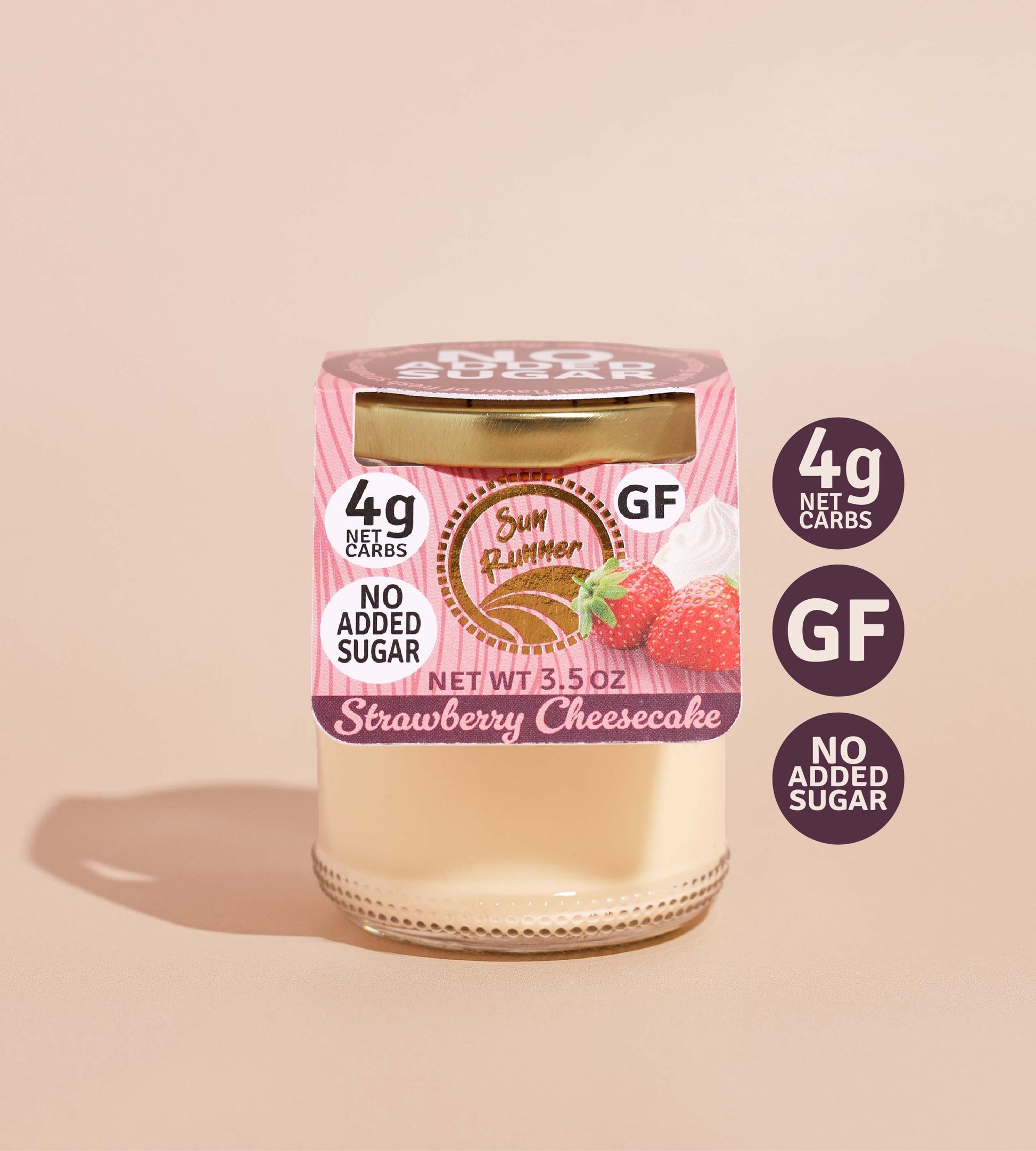 Rich, creamy cheesecake bursting with the sweet flavor of fresh strawberries. No added sugar, no gluten, no aftertaste and only 4 grams of net carbs per jar. Enjoy guilt free!